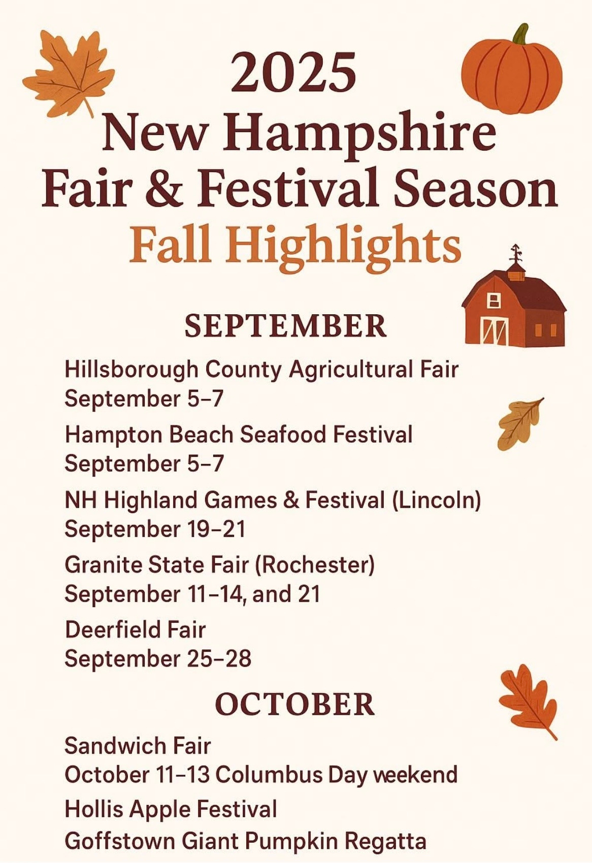 One of the best parts of autumn here in the Lakes Region is the return of local fairs. From the laughter echoing through the fairgrounds to the smell of fried dough in the air, fairs bring families together for timeless fun. Children tug at their parents' hands to see the animals, while friends gather to cheer on tractor pulls and catch up over steaming mugs of cider. We hope to see you at some of our favorite fairs!