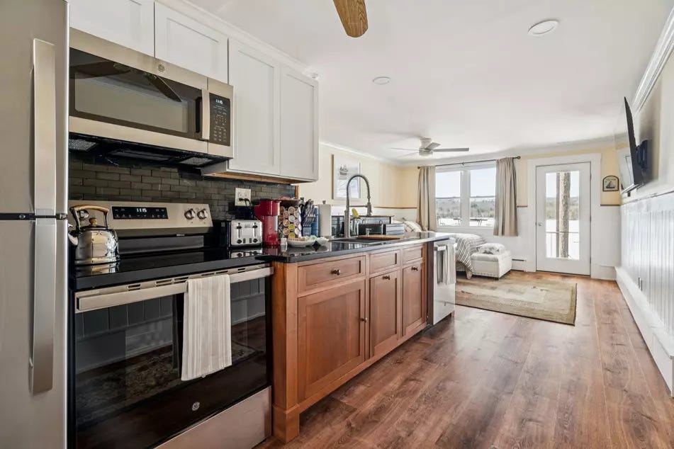 The honest tradeoffs: it’s being sold as-is, it’s seasonal rather than year-round, it’s on a lake most out-of-state buyers have never heard of, and the 720 square feet will ask you to live simply. The as-is condition means you’re buying a project with water in front of it.
